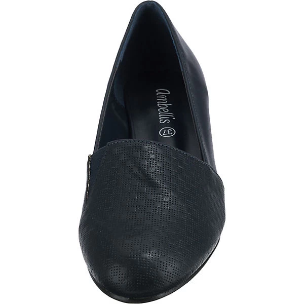 Ergänzen Ihre Garderobe: Die ansprechend gestalteten Loafers der Marke ambellis. Der Blockabsatz in bequemer Höhe bietet ein angenehmes Tragegefühl und einen stilsicheren Touch. Das Modell kommt ohne Verschluss aus, sodass ganz einfach hineingeschlüpft werden kann. Das Obermaterial des Paares ist aus Synthetik und erzeugt ein stimmiges Design.