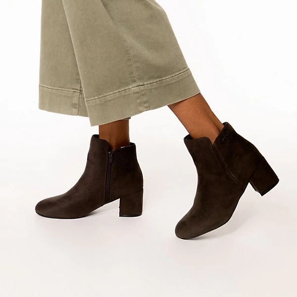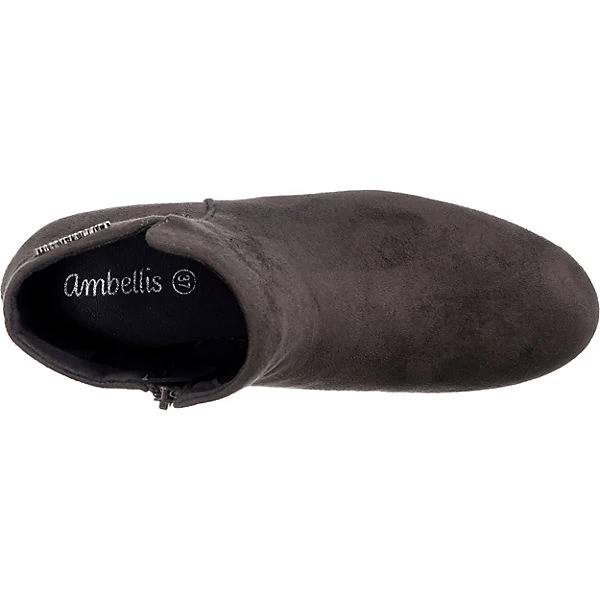 Unterstreichen Ihren perfekten Look: Die stilechten Stiefeletten von der Marke ambellis. Der Trichterabsatz sorgt für einen eleganten Auftritt. Die Schuhe sind mit einem Reißverschluss ausgestattet. Die Aufmachung dieses Paares wird durch das textile Obermaterial unterstützt.